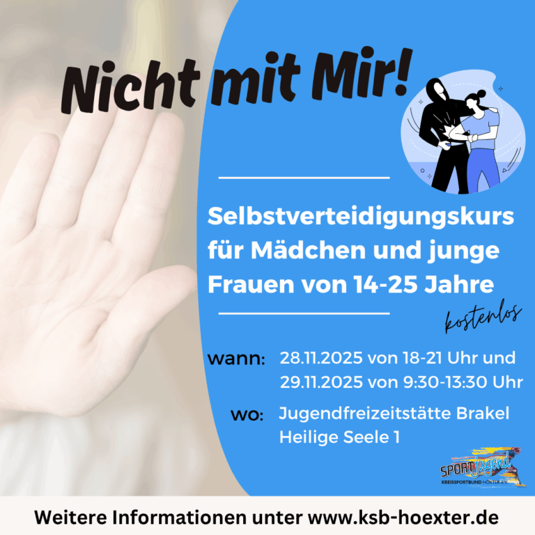 Brakel. Die Sportjugend im Kreissportbund Höxter e.V. lädt alle Mädchen und jungen Frauen aus dem Kreis Höxter im Alter zwischen 14 und 25 Jahren herzlich zu einem kostenlosen Selbstverteidigungskurs ein! 💪