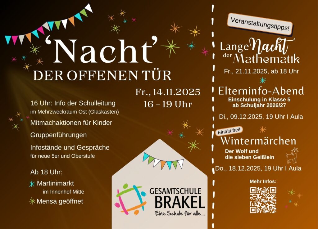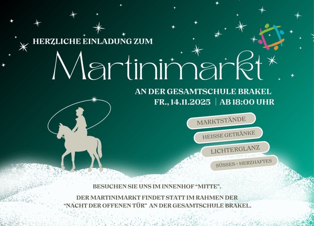 Fr. 14.11.2025, 16 – 20 Uhr: “Nacht der offenen Tür” und “Martinimarkt” – Schulveranstaltung am Spätnachmittag/ frühen Abend mit Anwesenheitspflicht für alle Lehrkräfte.